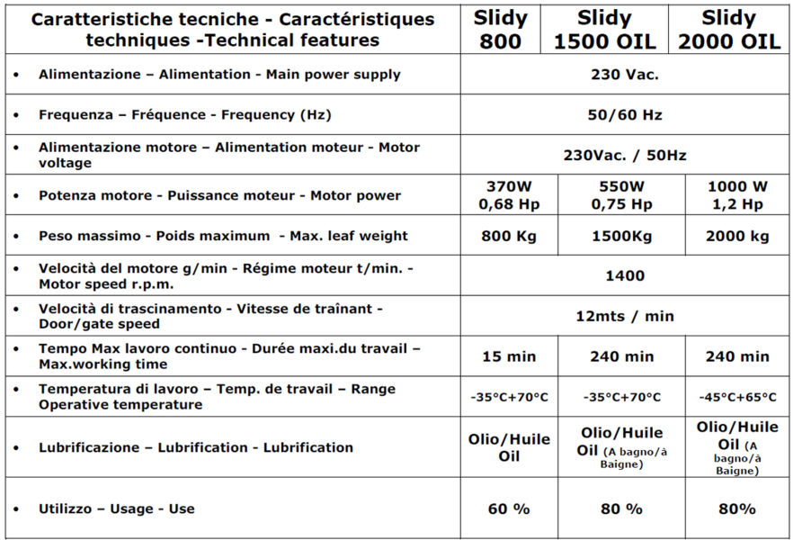 - Per cancelli Scorrevoli fino a 1500 kg di peso SLIDY 1500 OIL